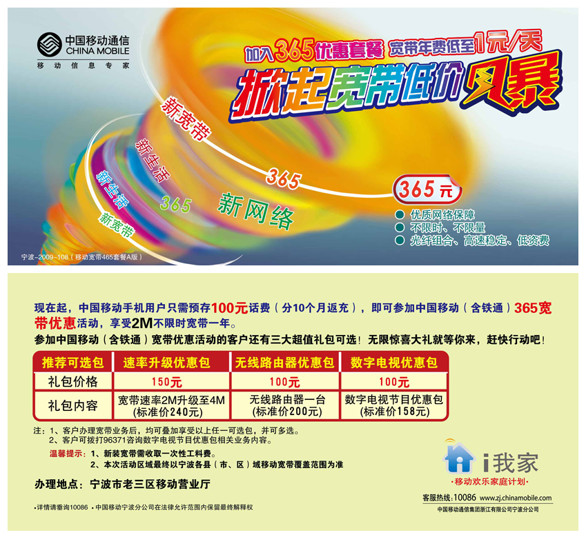加入365優(yōu)惠套餐 寬帶年費(fèi)低至1元/天