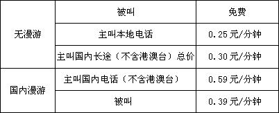 2)國(guó)際長(zhǎng)途0.80元/6秒、臺(tái)港澳長(zhǎng)途0.20元/6秒,不收基本費(fèi)/漫游費(fèi)。