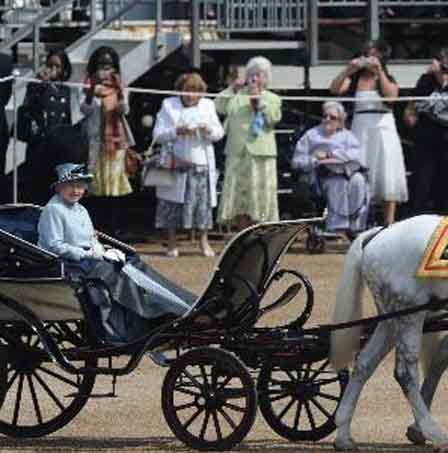 6月11日,英國王室成員在皇宮白金漢宮觀看慶祝女王伊麗莎白二世生日的游行。英國女王伊麗莎白二世的生日日期是4月21日,但慶典一般都安排在6月的一個星期六舉行。
