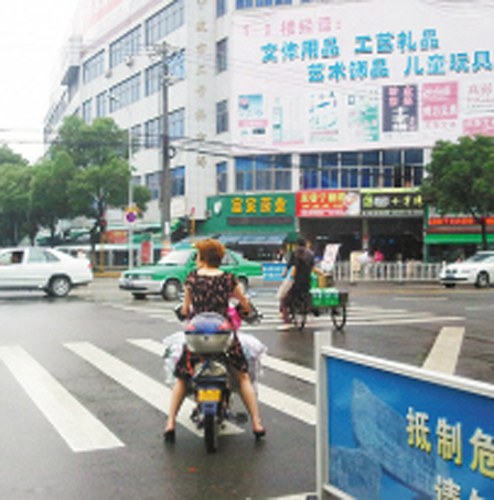 昨天,記者隨機(jī)抽取了江東寧穿路與中興路交叉口作為調(diào)查點(diǎn)。早上9點(diǎn)左右,該路口非機(jī)動車車流已顯平緩,電動自行車停車越線依然十分嚴(yán)重。
