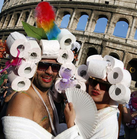 6月11日,意大利羅馬,同性戀者舉行“歐洲驕傲”(EuroPride)節(jié)游行。這個游行活動每年在歐洲不同的國家輪流舉行。