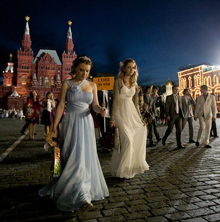 每年六月底,莫斯科紅場都會舉辦一次畢業(yè)舞會,年輕的學生會盛裝參加舞會享受他們中學生時代的最后歡樂。