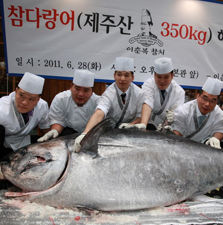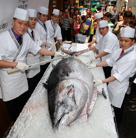 350公斤重巨型金槍魚現(xiàn)身韓國首爾