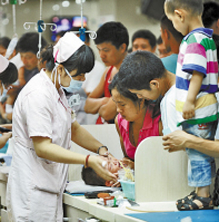 據(jù)介紹,這些患兒得的大多數(shù)是季節(jié)病,一是發(fā)燒、感冒等上呼吸道感染;二是腹瀉。另外,眼下正是手足口病高發(fā)時期,得手足口病的患兒也不少。