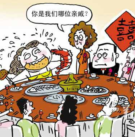 這位親戚將情況告訴了新郎的母親,新郎的母親走過(guò)來(lái)仔細(xì)辨認(rèn),可就是認(rèn)不出這名婦女是哪一位“親戚”,就問(wèn)她:“你是我們哪位親戚?”那名婦女說(shuō):“我是新郎同學(xué)的母親。我兒子沒(méi)空,叫我替他參加婚宴!毙吕傻哪赣H問(wèn):“你兒子叫什么名字?”那名婦女虛晃一槍反問(wèn):“這里是××園酒店嗎?”“這是×川酒店!薄拔易咤e(cuò)酒店了!闭f(shuō)完狼狽離去。