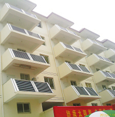 該“陽光公寓”建筑面積15000多平方米,集光伏、光熱為一體,把陽臺設計成70°斜面,帶外凸包頭,可以把真空管或者平板太陽能的集熱系統(tǒng)鑲嵌其中,安全美觀又不影響熱效率。公寓內48套住房所有生活用電和熱水供應均由屋頂光伏并網(wǎng)發(fā)電項目和壁掛太陽能熱水器提供。光伏發(fā)電既舒緩了白天高峰用電需求,還可將多余的電力輸入電網(wǎng)用于企業(yè)日常生產。