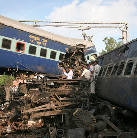 2011年7月10日,印度一列從印東部城市加爾各答駛往北部哈里亞納邦卡爾卡市的列車正駛?cè)氡狈桨畹鸟R爾瓦車站。由于車速很快,列車的10多節(jié)車廂和火車頭全部出軌,許多乘客被困在側(cè)倒的車廂內(nèi)。該事故的死亡人數(shù)已上升至35人,受傷人數(shù)上升至200人。
