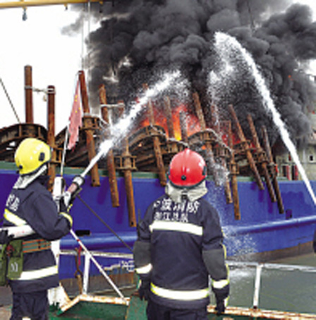 接到報警后,象山消防、漁政、海警等多部門人員趕到了事發(fā)現場。大家利用周圍的一些小船和巡邏艇,設法靠近起火船只,抽上水來奮力撲火。與此同時,消防隊員還在水槍的掩護下登上起火船只,對火勢最嚴重的操作室進行滅火。3小時后,大火終于得到控制。