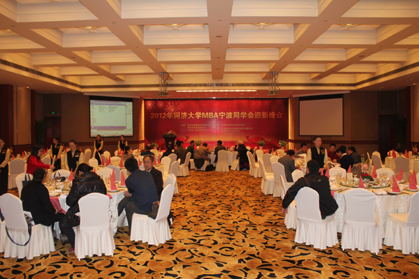 1月7日晚上,南苑飯店世紀(jì)廳里其樂融融,2012年同濟(jì)大學(xué)MBA寧波同學(xué)會迎新晚會在一片笑聲歡語中舉行。MBA班的歷屆校友齊聚一堂,互相慰問近況,通過舞臺獻(xiàn)藝、互動游戲等活動共度良宵。