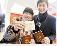情人節(jié)最浪漫的禮物不是燭光晚餐、鮮花巧克力,而是一張結(jié)婚證。昨天情人節(jié),依舊被無數(shù)新人選為登記結(jié)婚的好日子,用一對剛剛領(lǐng)到證的甜蜜小夫妻的話說:“在情人節(jié)登記結(jié)婚,昨天是情人,今天是老婆,更值得紀(jì)念!”據(jù)市民政局統(tǒng)計,昨天約有1800對新人登記結(jié)婚,這個數(shù)量蓋過往年的情人節(jié),是平時登記量的10倍,也是我市龍年迎來的第一波結(jié)婚登記高峰。(東南商報)