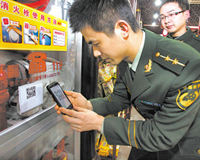 22日,海曙消防大隊(duì)警官在測試南塘老街商鋪的“消防二維碼”布點(diǎn)與終端的聯(lián)動情況。當(dāng)天,南塘老街一期200多個消防設(shè)施全部貼上二維碼。據(jù)介紹,該二維碼里存儲著消防設(shè)施、消防通道、維護(hù)保養(yǎng)、年檢日期等情況和數(shù)據(jù),并用“消防安全巡查平臺”的專用手機(jī)掃描二維碼,對該區(qū)域的消防安全實(shí)施信息化監(jiān)控。(寧波日報(bào))
