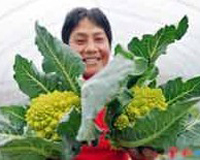 近日,姚東蔬菜基地的一名工作人員正在展示大棚里種植的綠寶塔花菜。據(jù)悉,該蔬菜基地新引進(jìn)了一千多株特色花菜品種,有紫皇花菜、金花菜和綠寶塔菜。這些花菜以其獨特的外觀和美味受到市場歡迎,每公斤花菜賣到30多元。(余姚新聞網(wǎng))