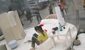 氣泡酒店亮相鬧市 美女生活兩天供參觀
