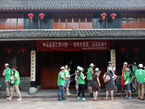 “其實,古人生活的庭院不像電視里看到的那么大;他們住的院子也就這么小!”在銀臺第,講解員周東旭介紹道,“這是一個極具寧波特色的四合院,庭院里的水缸、院墻上的馬頭墻和觀音斗,無不反映著寧波本地的風俗習慣。”