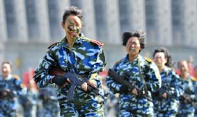 山東女大學(xué)生“持槍”軍訓(xùn)展颯爽英姿