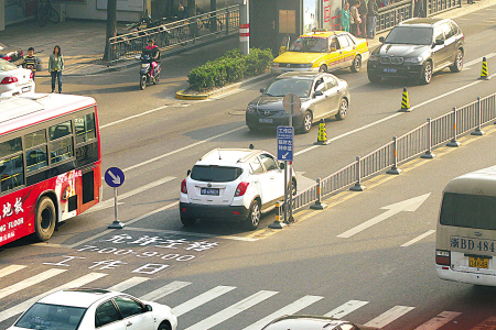 盡管好消息不斷,但從昨天的情況來看,“潮汐”車道目前仍然存在著不少問題。比如,在柳汀街與南站西路路口,這里是“潮汐”車道的起始點,但很少有車輛直接駛?cè)耄蠖际堑搅饲胺讲抛兊赖。有人建議改造硬件設(shè)施,跟上需求,相信等磨合期過后情況就會好轉(zhuǎn)。此外,為了方便車輛左轉(zhuǎn)進入“潮汐”車道,婦兒醫(yī)院門口的隔離欄在早高峰期間(工作日早上7點至9點)是被臨時拆除的,這也導(dǎo)致一些市民貪圖方便直接橫穿馬路,帶來安全隱患,亟須各界引起重視,并想出對策。