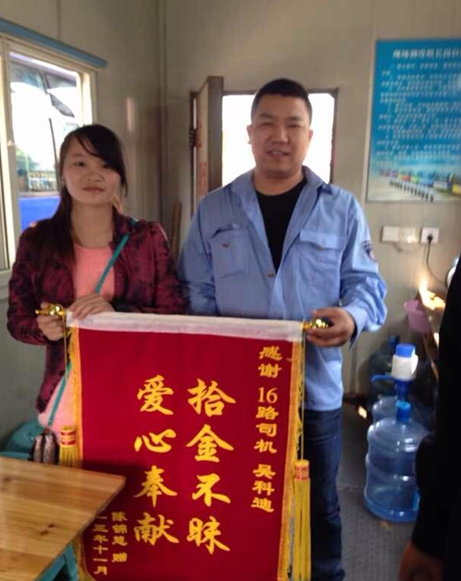 第二天上午.陳女士到烏山站向吳師傅遞上了“拾金不昧愛心奉獻”的錦旗,恰巧當(dāng)天也是吳師傅的生日。