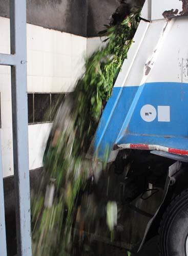 在海曙區(qū)雙楊垃圾中轉(zhuǎn)站,不少市民捂住了鼻子,雖然現(xiàn)場(chǎng)有噴淋除臭和風(fēng)動(dòng)機(jī)械除臭,但依舊有垃圾的酸臭味飄散在空氣中。“我們每天的工作量在300噸左右,垃圾肯定是有氣味產(chǎn)生的,又因?yàn)槔谵D(zhuǎn)運(yùn)的過程中處于密閉狀態(tài),有機(jī)成份發(fā)酵增加氣味。”垃圾中轉(zhuǎn)站一名姓周的負(fù)責(zé)人告訴我們,“最主要的是因?yàn)槔锩婊煊刑嗟膹N余垃圾,這些濕垃圾不僅容易發(fā)酵,還使得垃圾重量增加,所以我們都是要經(jīng)過壓縮之后再進(jìn)行運(yùn)輸?shù)模刻靿嚎s出來的污水有30噸左右。”