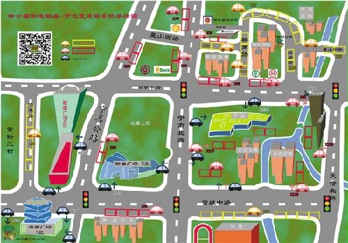 昨天鄞州區(qū)城管局推出了首張手繪車位圖,該車位圖詳細(xì)標(biāo)出了萬達(dá)—聯(lián)盛商圈周邊的5000余個停車位,只要一圖在手,就對所有車位一目了然。