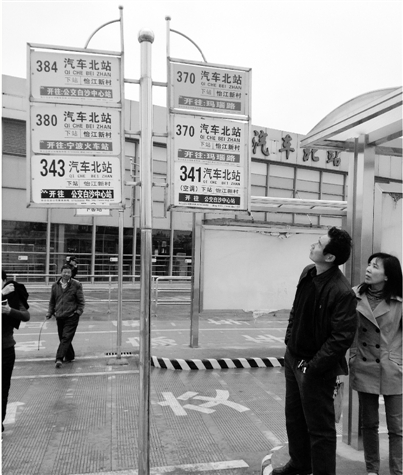 記者了解到,此前交通部門為了方便市民出行,為汽車北站臨時(shí)站配備12條始發(fā)、途經(jīng)的公交車線路,可是,真正在汽車北站臨時(shí)站門口公交站停靠的,只有384路、370路、341路、380路、343路共5條線路。