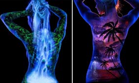 藝術(shù)家在人類皮膚上用熒光創(chuàng)作