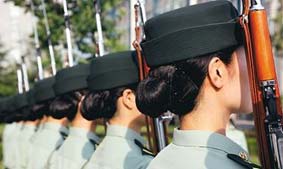 三軍儀仗隊(duì)首現(xiàn)女兵身影 統(tǒng)一發(fā)髻化淡妝 組圖