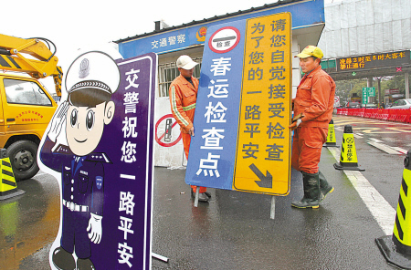 近日,海曙交警在杭甬高速段塘出入口設(shè)置春運(yùn)檢查服務(wù)站和標(biāo)識。為保障春運(yùn)安全,從2月4日起,交警將在全市17個主要高速出入口的檢查服務(wù)站實行全天候執(zhí)勤。在40天的春運(yùn)期內(nèi),服務(wù)站將為過往司機(jī)和乘客提供飲用水、常用藥品和指路等服務(wù)。同時,交警還將重點(diǎn)檢查長途客車超速、超員、超載和疲勞駕駛等現(xiàn)象。
