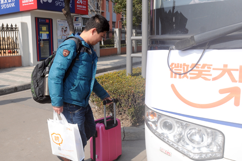 據(jù)悉,從2月7日到現(xiàn)在,四個工業(yè)區(qū),每天至少能有800多人坐上58同城的微笑大巴前往火車站或汽車站。(記者 宋璞玉)