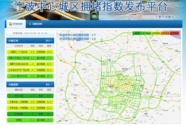 哪些區(qū)域堵車,哪條路堵車,堵車多嚴重……從4月1日開始,你可以通過查詢寧波交通擁堵狀況,合理規(guī)劃自己的出行。本次發(fā)布范圍包括市三區(qū)和鄞州中心區(qū)的主要道路、繞城高速和杭甬高速部分路段。目前已界定道路網(wǎng)絡主要包括9條城市快速路段,88條城市主干路段和583條城市次干路段,以及其它道路路段。每5分鐘數(shù)據(jù)更新一次。