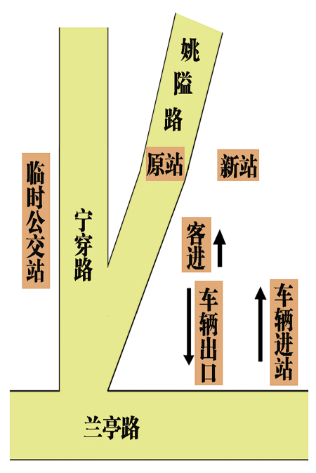 位于寧穿路707號的新臨時汽車東站將在明天正式啟用。新臨時汽車東站位于現(xiàn)站址的北面30米處,現(xiàn)在的站房將讓位于姚隘路拓寬,成為拓寬后姚隘路的一部分。