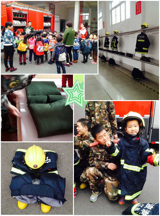 參觀過程中,消防員叔叔給大家講解了消防車上的消防器材名稱和用途,還講解了常見的消防用品及有關(guān)的救火時的各種材料的服裝,讓大家大開了眼界,這些都是平時看不到的消防車上的秘密。消防員叔叔還介紹了有關(guān)防火知識及火災(zāi)發(fā)生時基本的自救方法,而且小朋友們在消防隊叔叔的指導(dǎo)下也戴上防毒面具,穿上防火服裝,小朋友們穿上這些服裝感覺寸步難行,很沉重,親身體驗到消防員叔叔的辛苦。