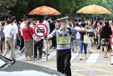 今天是高考第二天,又是周一,將會(huì)出現(xiàn)每周最繁忙的交通早高峰。交警說(shuō),預(yù)計(jì)從早上7時(shí)30分起各地的交通流量會(huì)大幅度增加,所以接送考生的家長(zhǎng)切勿拿前一天的出行時(shí)間表來(lái)安排今天的出行計(jì)劃,宜早不宜遲。此外,請(qǐng)家長(zhǎng)聽(tīng)從現(xiàn)場(chǎng)執(zhí)勤人員的指揮,接送車(chē)輛做到即停即走。陪同等候的家長(zhǎng),也請(qǐng)到指定區(qū)域停車(chē)。