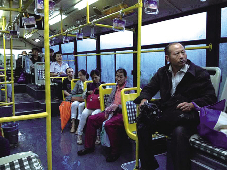 臺風天的清晨,馬路上汽車不多,但縱觀541路整個行程34個站,除了臨近終點站的三個站點外,幾乎每站有一兩個乘客在等候。“沒想到這么早會有那么多人,我以為臺風天只有我一個乘客呢。”施阿姨在寧大附屬醫(yī)院上了車,她的兒媳婦正在醫(yī)院待產(chǎn),她坐公交車去孔浦的家里拿東西,“公交車在臺風天也不停運,好樣的。”