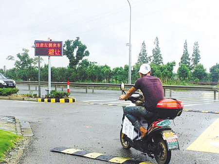兩個(gè)月前,這個(gè)路口有了新變化,路口花壇處放置了一套“來車預(yù)警系統(tǒng)”。只要前方有車輛過來,系統(tǒng)就會(huì)在顯示屏上發(fā)布“注意左側(cè)來車”的提醒,同時(shí)聲控系統(tǒng)也會(huì)進(jìn)行語言播報(bào)。