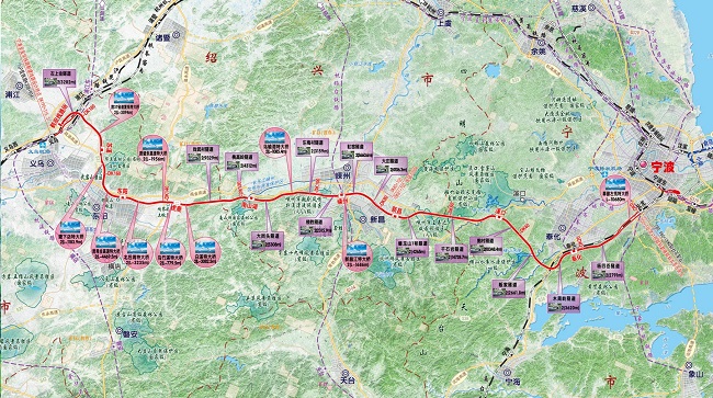 整段鐵路新建里程185公里,沿途設(shè)義烏、蘇溪、東陽、虎鹿(預(yù)留)、南山湖、嵊州、新昌、溪口、奉化、云龍等10個車站,估算總投資287億元,項目由浙江省交通集團和上海鐵路局(代表鐵路總公司出資)及沿線地方投資主體共同出資建設(shè),預(yù)計2020年年底建成通車。
