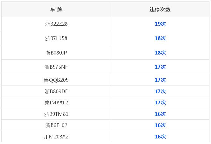 違法停車記錄最多的前十輛車