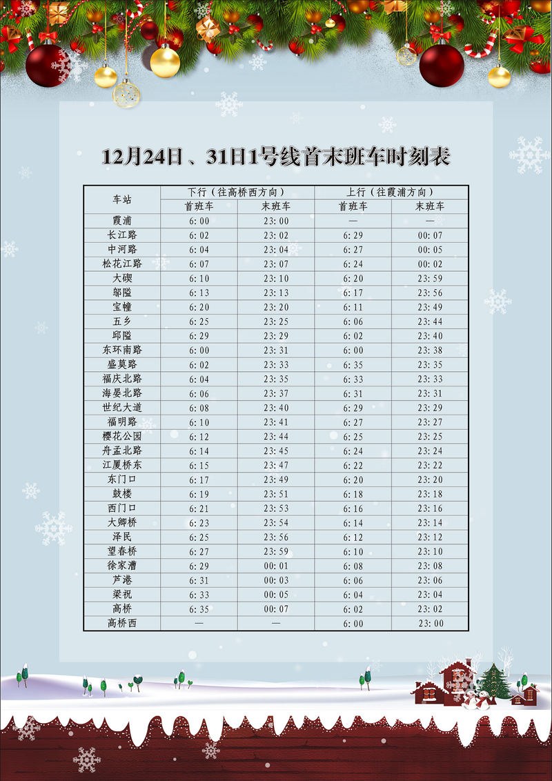 12月24日、12月31日當(dāng)天,地鐵運(yùn)營(yíng)時(shí)間為6:00—23:00,共計(jì)17小時(shí),較平日延長(zhǎng)1小時(shí)。