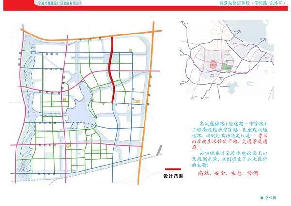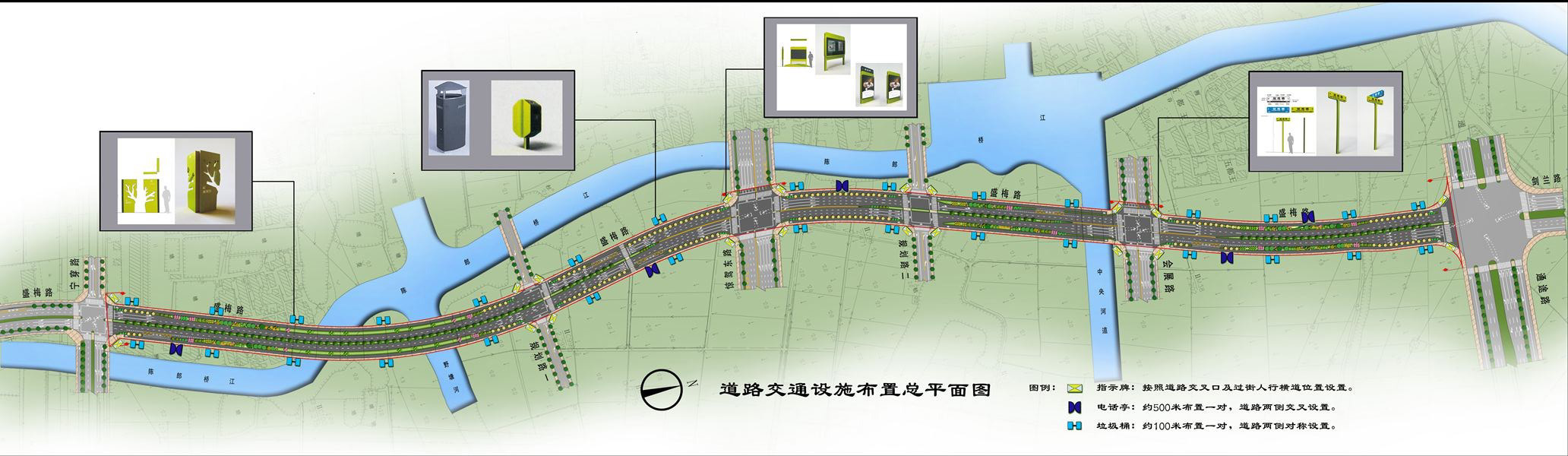 盛梅路工程位于鄞州區(qū)邱隘鎮(zhèn)(寧波東部新城片區(qū)東北部),道路北起通途路,南至寧穿路,中途與會展路、驚駕東路等東西向道路相接,從北至南橫跨中央河道、野塘河、陳郎橋江三條河道,全長約1435米,道路標(biāo)準(zhǔn)路幅寬度36米。