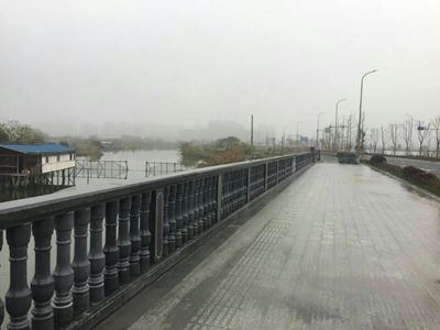 欄桿采用純花崗巖石材,柱式花瓶形式,主要由大望柱、小望柱、方柱、花瓶柱、底梁和扶手現(xiàn)場拼裝加固成型。一樽樽柱式花瓶式的欄桿,整齊的站立在陳郎橋江和野塘河上,別具風(fēng)采。