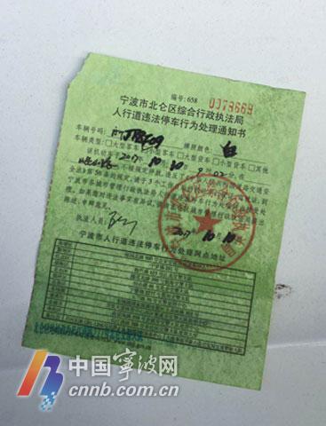 今天上午,北侖區(qū)綜合行政執(zhí)法大隊新碶中隊執(zhí)法隊員在岷山路上巡查時發(fā)現(xiàn)一輛機(jī)動車大搖大擺停在了人行道中央,執(zhí)法隊員本想勸導(dǎo)車主規(guī)范停車,但由于車主不在附近,便準(zhǔn)備對其依法實施違停抄告,此時卻驚奇地發(fā)現(xiàn)該車上已貼有違停抄告。