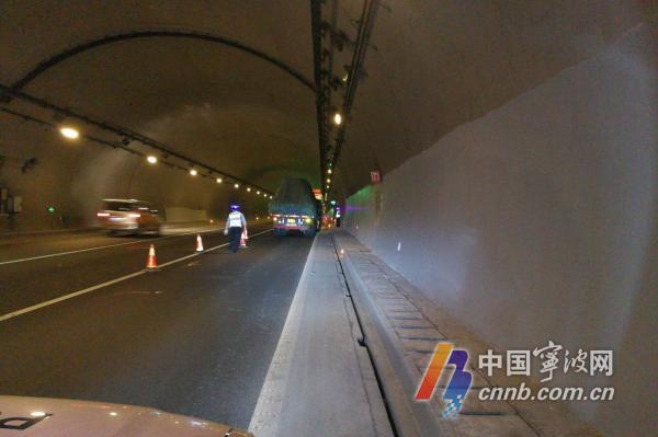 5月17日晚上7時(shí)25分許,郭師傅駕駛半掛貨車開往上海。在途徑G15沈海高速往上海方向長溪嶺隧道內(nèi)時(shí),因氣溫炎熱,排氣管發(fā)生故障,車輛拋錨在第三車道。寧波高速交警二大隊(duì)民警何雋、協(xié)警裘為軍接警后火速趕往現(xiàn)場,進(jìn)行示警處置。