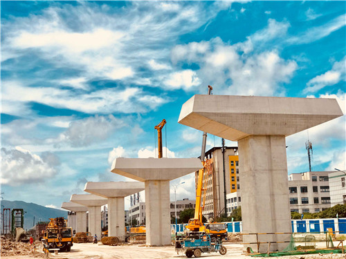 目前主線高架橋主體結(jié)構(gòu),主線橋面鋪裝及防撞墻施工完成50%,輔道橋完成40%,保通工程完成60%。年底前完成主線高架橋主體結(jié)構(gòu),主線橋面鋪裝及防撞墻施工完成50%,輔道橋完成75%,累計(jì)完成總產(chǎn)值60%,計(jì)劃于2019年9月底基本建成。