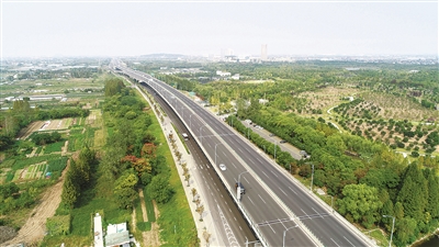 道路設(shè)計充分考慮了沿線地形地質(zhì)特征和環(huán)境條件,加強交通與沿線生態(tài)景觀的一體化設(shè)計,做到工程品質(zhì)與自然環(huán)境有機統(tǒng)一,并以金色系作為綠化景觀主旋律,沿途一整排2.5米高的黃金槐,層次分明,被稱為“金色大道”。