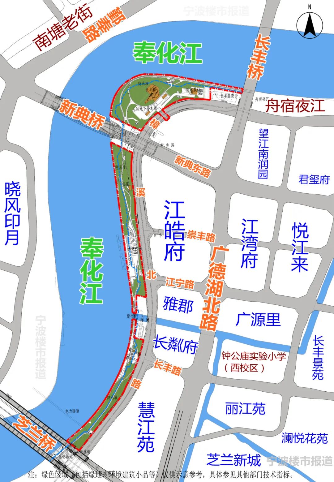 其中,奉化江東岸濱江休閑帶北起長(zhǎng)豐橋、南至芝蘭橋、西至奉化江、東至樟溪北路,沿江岸線長(zhǎng)約1.6公里,建設(shè)面積約8.5萬(wàn)平方米。