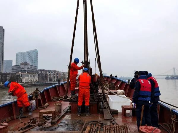 為了加快推進(jìn)本次作業(yè),寧波軌道交通前期多次與寧波海事局通航管理處及三江口海事處對接溝通,于春節(jié)前取得施工許可證。節(jié)后上班第一天就組織勘察單位先后完成安全教育培訓(xùn)、施工前交底、船舶安全檢查等各項(xiàng)準(zhǔn)備工作,把握春運(yùn)期間大部分甬江通航船舶停航過節(jié)的契機(jī),于2月11日正式啟動(dòng)勘察工作,在一周時(shí)間完成水上勘察作業(yè)。