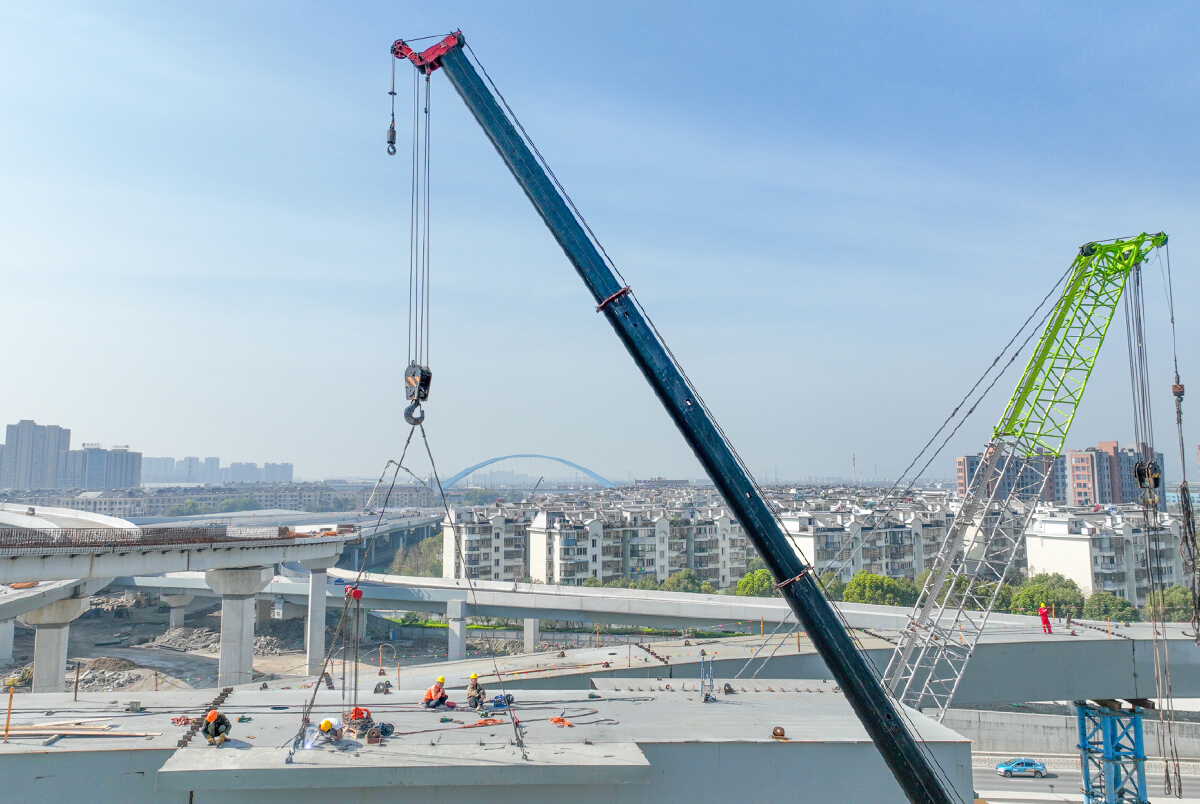 該工程位于江北區(qū)和海曙區(qū)之間的重要地段,社會道路、地下管線錯(cuò)綜復(fù)雜,高空作業(yè)困難重重。“建設(shè)者們科學(xué)安排施工計(jì)劃,攻克大跨度鋼箱梁吊裝難題,嚴(yán)抓安全管理、標(biāo)準(zhǔn)化建設(shè)和質(zhì)量管理,全力保障工程建設(shè)進(jìn)度。”該負(fù)責(zé)人說。