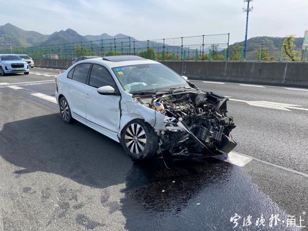 高速公路公共視頻顯示,事發(fā)前,有幾輛小車在寧波方向橫溪互通附近同向行駛,車速都不快,但距離都跟得很近,最后一輛黑色雷克薩斯操作不慎,與前一輛面包車發(fā)生了追尾,兩車均停在第一車道。