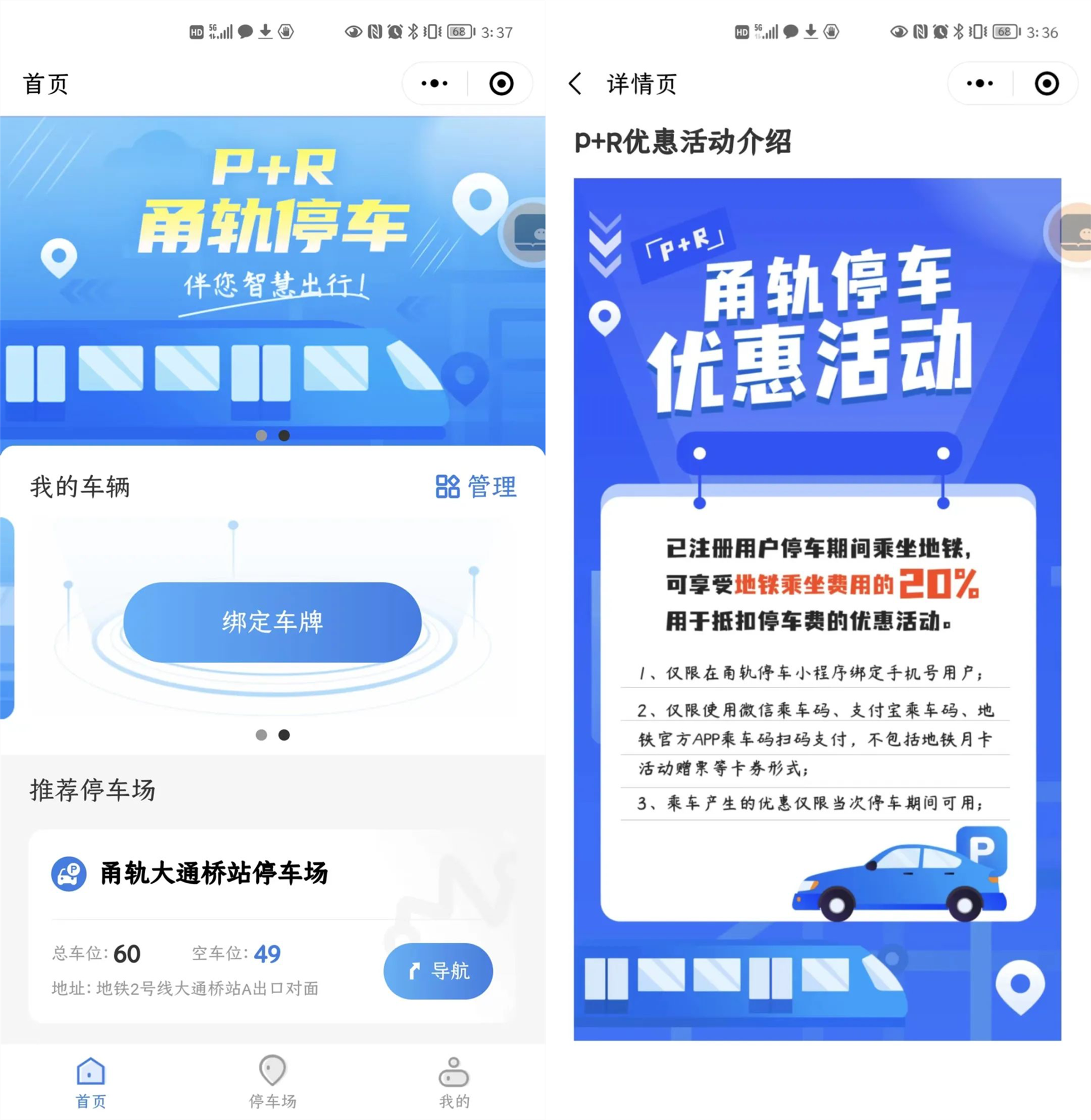市民可以在微信、支付寶搜索“甬軌停車”,或在現(xiàn)場(chǎng)掃描二維碼進(jìn)入小程序,出現(xiàn)“P+R”甬軌停車界面后完成注冊(cè)并綁定車牌即可停車,注冊(cè)用戶在停車期間乘坐地鐵,還可享受地鐵乘坐費(fèi)用的20%用于抵扣停車費(fèi)的優(yōu)惠活動(dòng)。