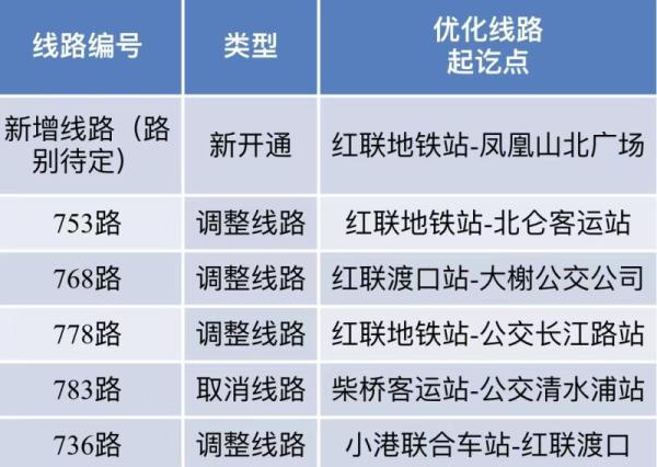 其中,今年內(nèi)計(jì)劃新開通公交線路1條、優(yōu)化調(diào)整4條公交線路、撤銷1條公交線路,具體情況如下: