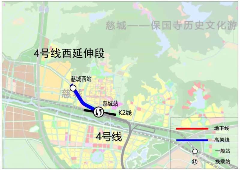 為進(jìn)一步促進(jìn)慈城區(qū)域的發(fā)展,按照第三期建設(shè)規(guī)劃批復(fù),軌道交通4號(hào)線西延段設(shè)一站一區(qū)間,從4號(hào)線慈城站引出后,沿寧慈西路向西北方向敷設(shè),敷設(shè)至寧慈西路與廟灣路交叉口,在路口東側(cè)設(shè)置終點(diǎn)站慈城西站,線路全長(zhǎng)約1.77公里。